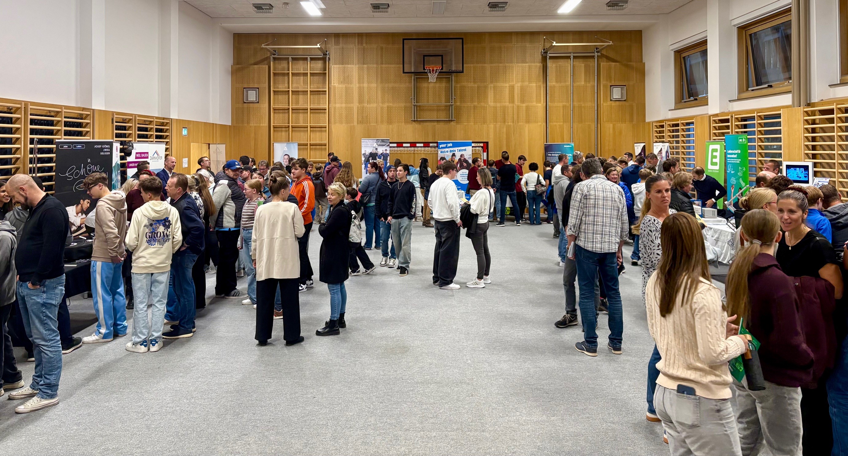Höhepunkt der drei Projekttage war die schulinterne Berufsinformationsmesse, die am 2. Oktober abends im Mehrzwecksaal der Schule stattfand. Mehr als 20 Betriebe aus der Region folgten der Einladung und stellten ihre Ausbildungsprogramme, Produkte und Tätigkeitsfelder vor. Die Schülerinnen und Schüler – gemeinsam mit ihren Eltern – nutzten die Gelegenheit, um sich direkt mit Ausbildnerinnen und Ausbildnern auszutauschen.