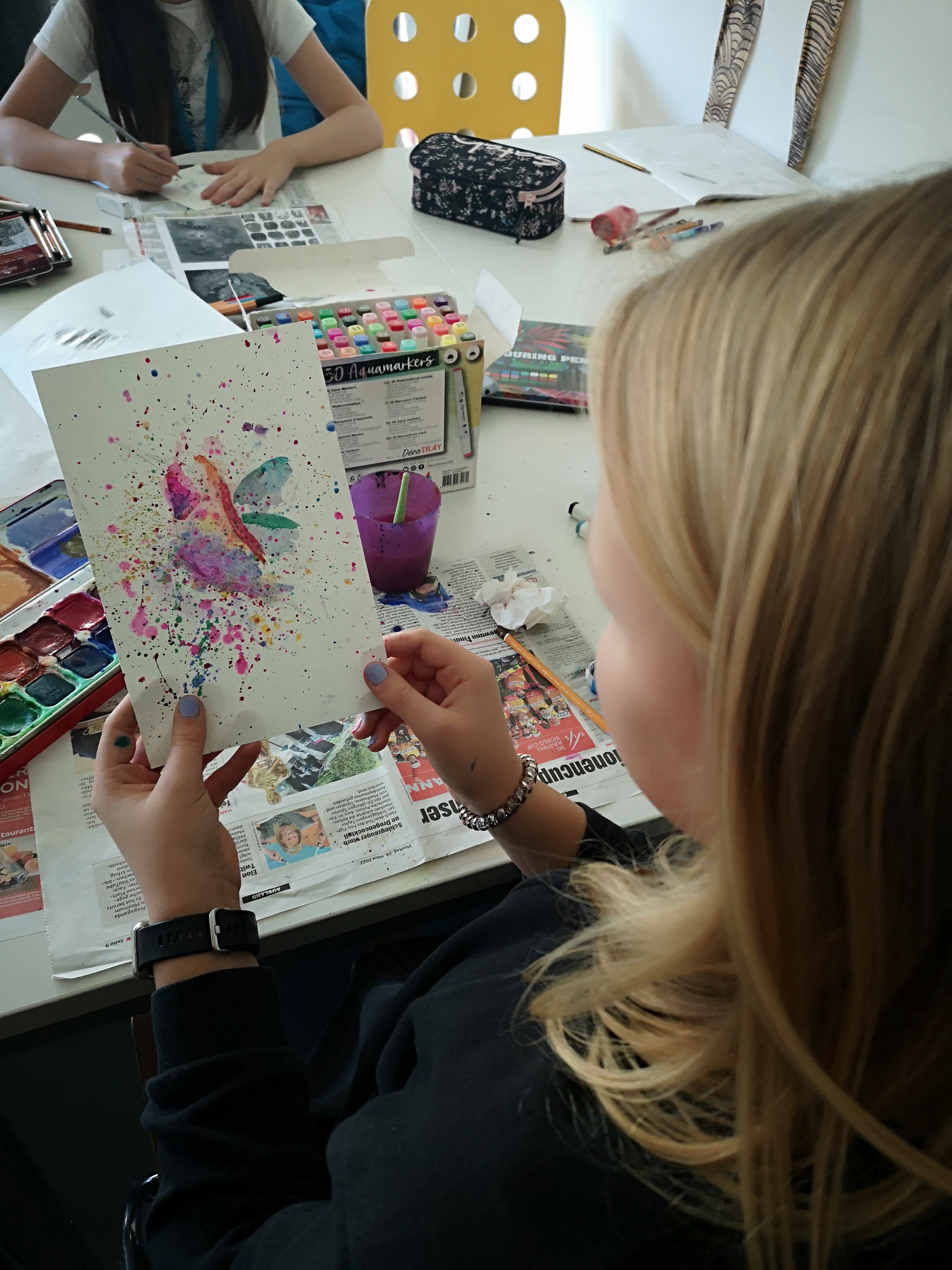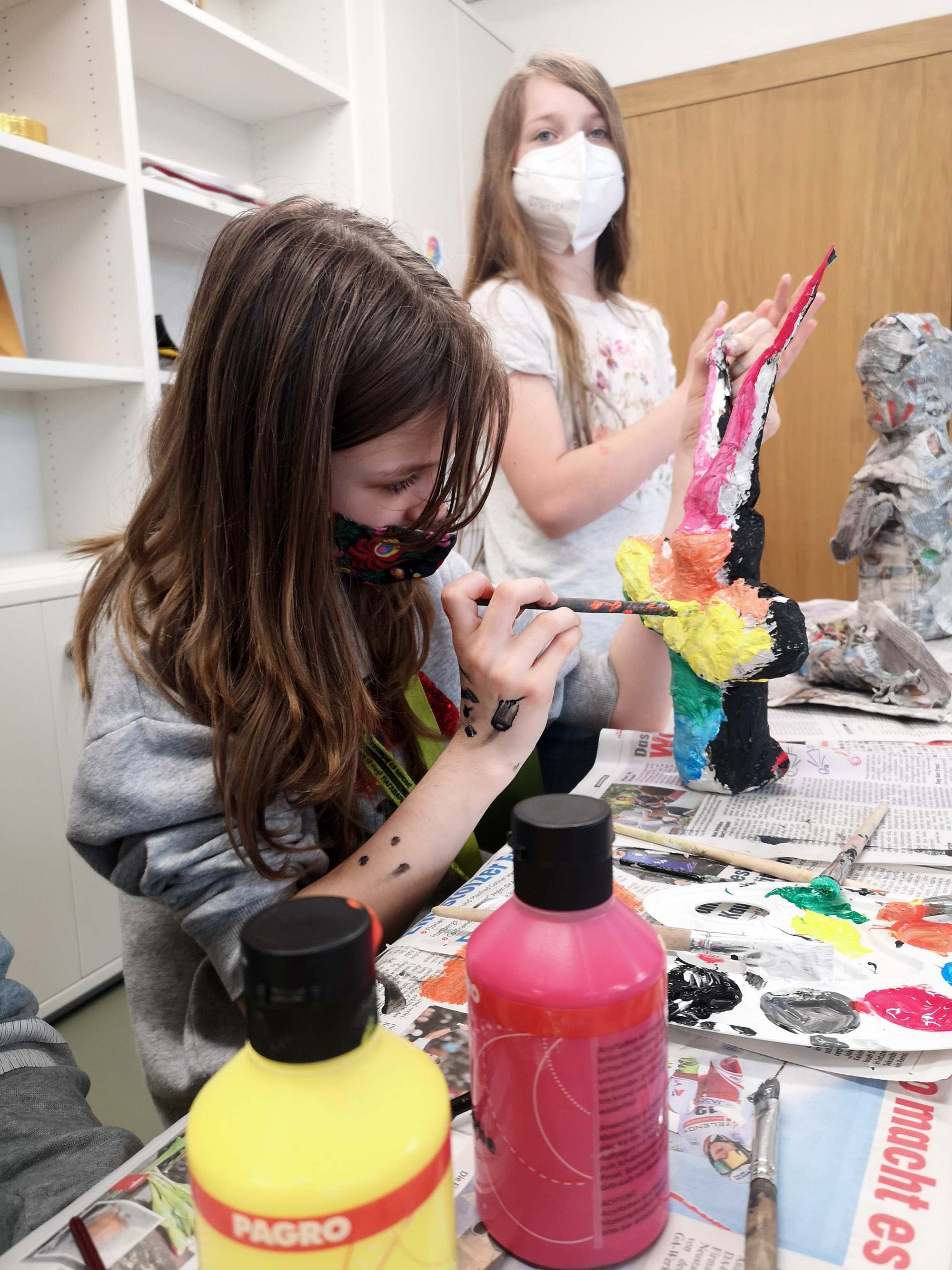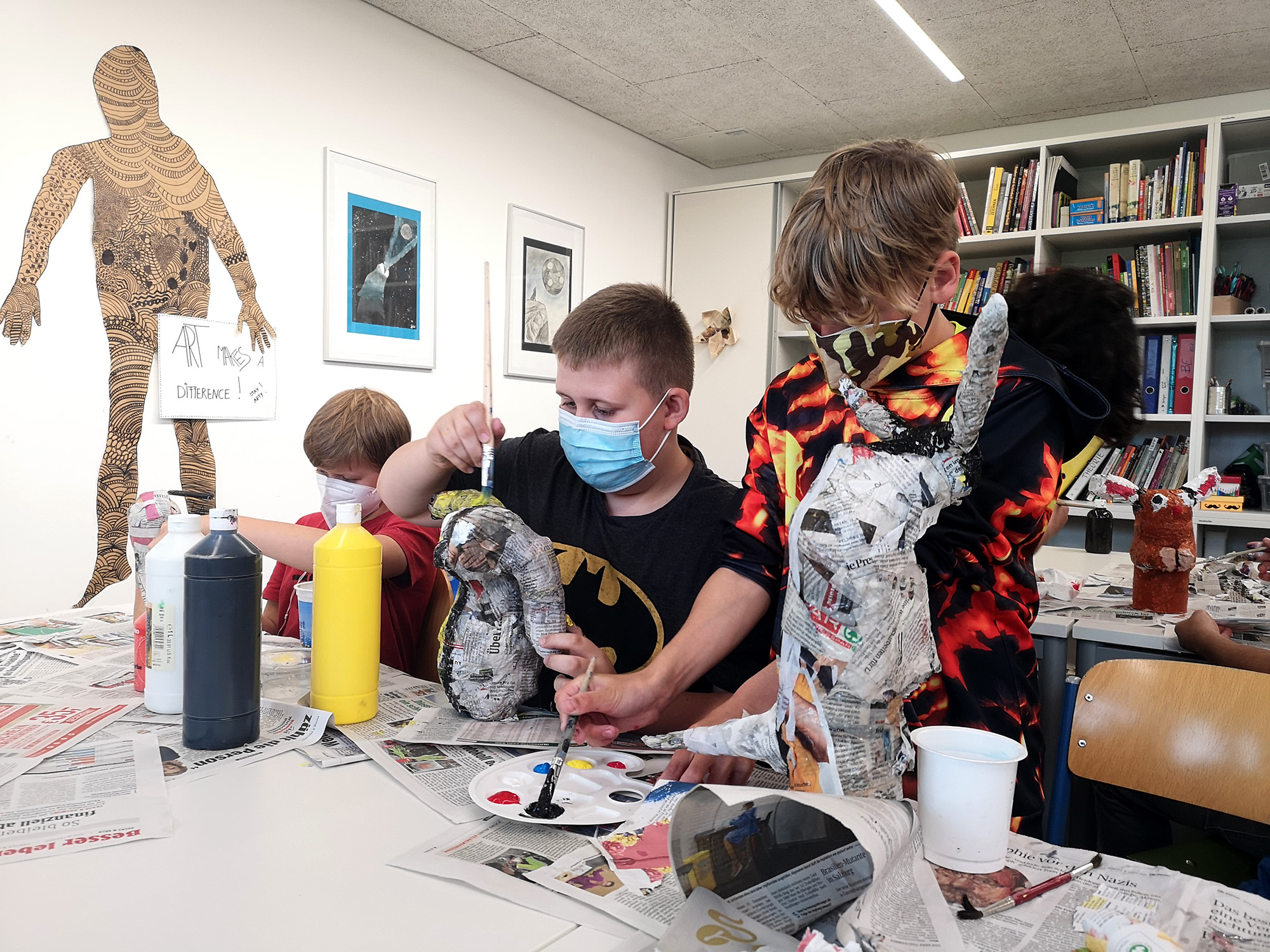 Die Schule nicht nur als Lernstätte zu sehen, sondern auch als Lebensraum, der freundlich und kreativ gestaltet wird, ist sehr wichtig. Neben dem oft stressigen Schulalltag mitten in der Corona Zeit, war das Kunstprojekt eine willkommene Abwechslung für die Schülerinnen. Alle vier sind sehr an künstlerischen Prozessen interessiert und schaffen gerne etwas mit ihren Händen. Einen ganzen Tag Zeit zu haben und sich stundenlang nur mit der eigenen Begabung zu beschäftigen ist etwas sehr Schönes!