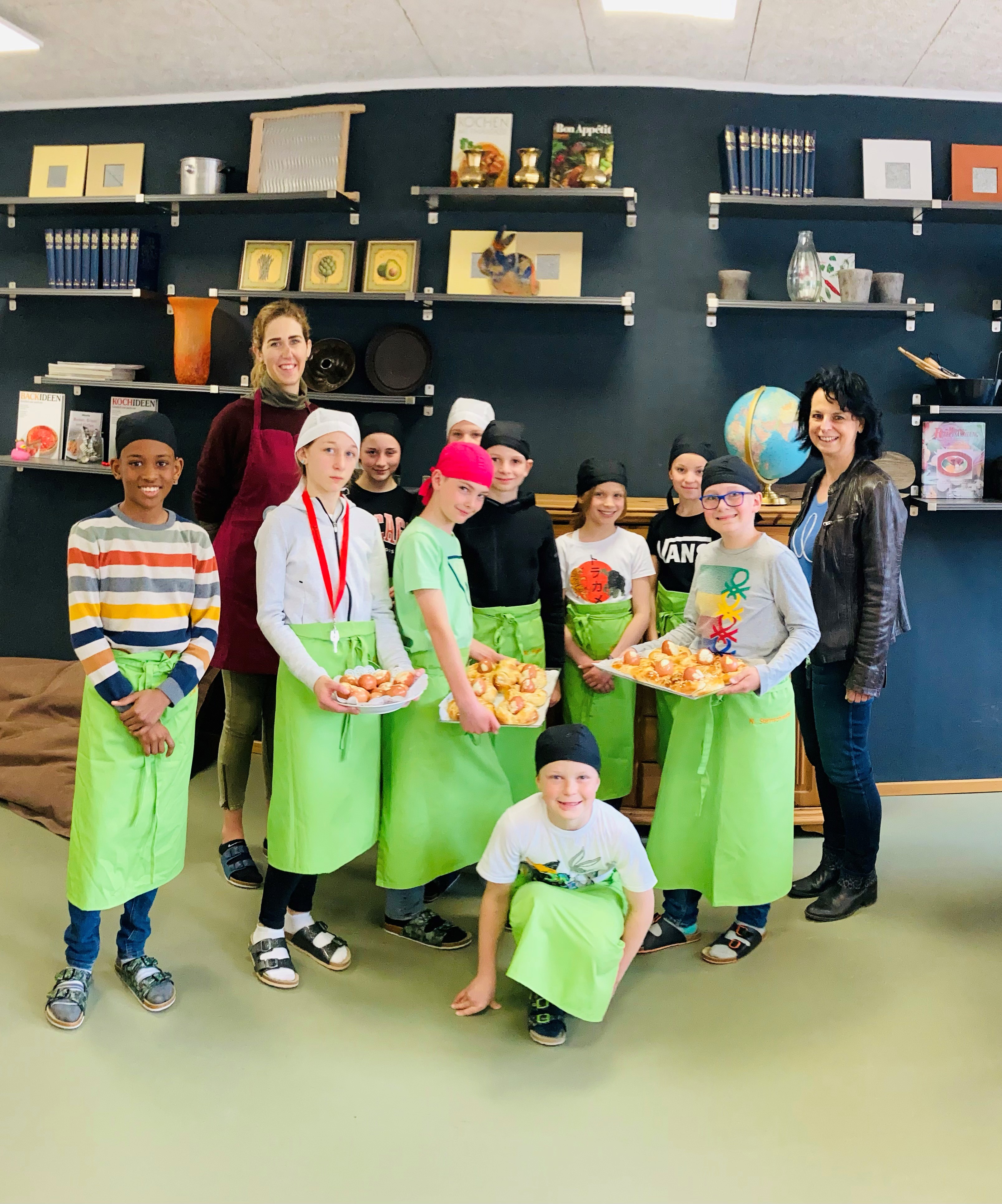 Unter der Leitung von Christine Lackner und Birgit Habenbacher fand ein ganz besonderes Osterprojekt statt: In unserem fächerübergreifenden Unterricht konnten die Schülerinnen und Schüler erfahren, wie einfach Nachhaltigkeiten selbst zu Feiertagen möglich ist. Im katholischen Religionsunterricht lernten sie Osterbräuche aus regionalen, nationalen und internationalen Gegenden kennen. Kräuter wurden gesammelt und die frühlingsfrische Natur damit entdeckt. Auf ganz natürliche Art und Weise wurden in der Lehrküche anschließend die Hühnereier eines Biobauern der Region österlich gefärbt. Die Naturschönheiten erhielten ihre Farbe durch Zwiebelschalen. Durch das Anbringen der gesammelten Frühlingskräuter machten die Kinder ihre Ostereier zu einzigartigen Kunstwerken. „Da braucht man ja nur Zwiebelschalen, Kräuter und sonst nichts!“, meinte Patrick sehr treffend.