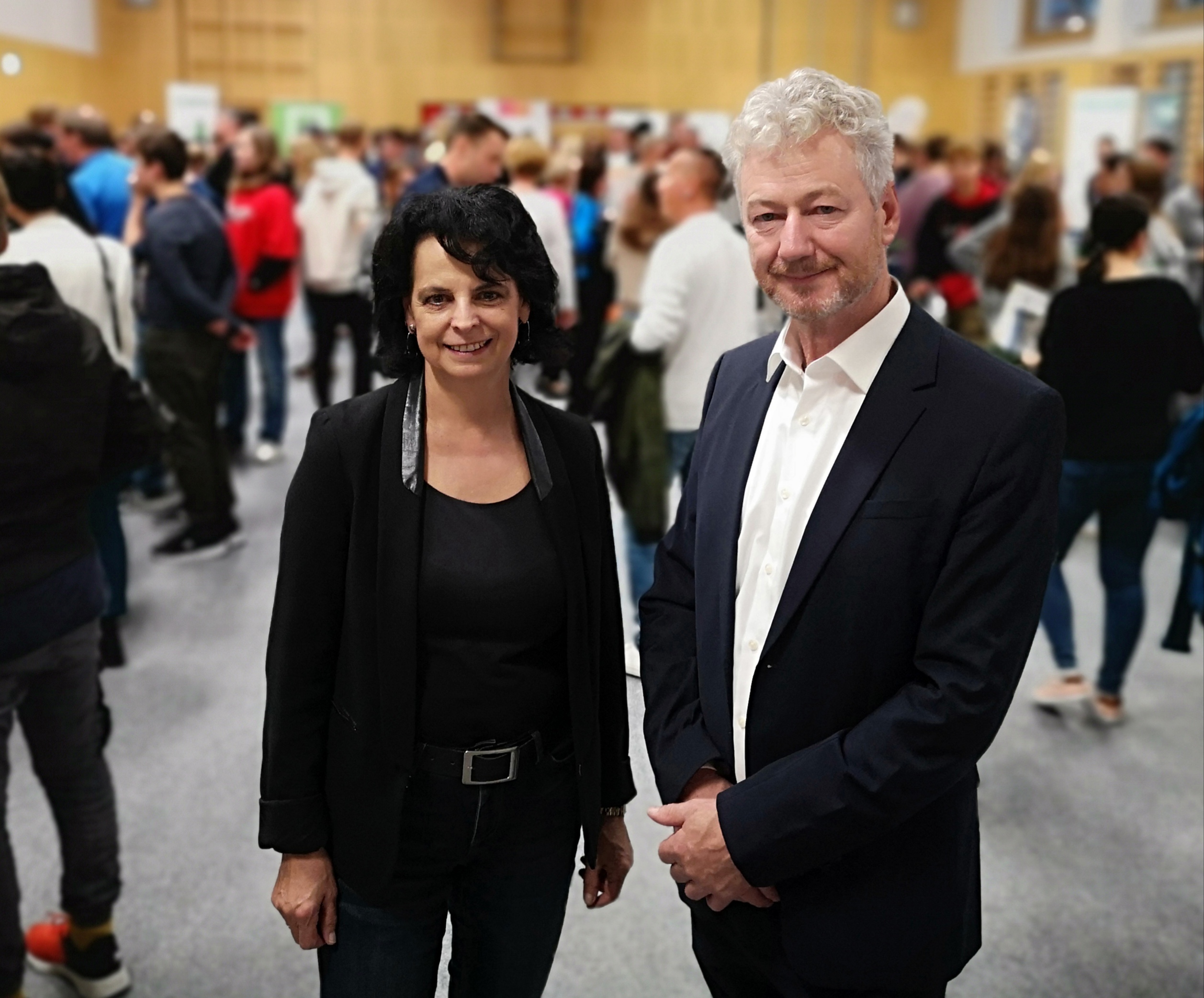 In diesem Jahr wurde das Angebot um eine abendliche Großveranstaltung erweitert: Die Mehrzweckhalle des Schulzentrums war zum Bersten gefüllt, weil zahlreiche regionale Betriebe ihre Angebote für Lehrlinge präsentierten. Nach der Eröffnung durch Herrn Bürgermeister Michael Viertler und Pflichtschulclusterleiterin Gabriele Aufinger-Gmeinböck nahmen die Schülerinnen und Schüler der MS und PTS Deutschfeistritz gemeinsam mit ihren Erziehungsberechtigten die Gelegenheit wahr, sich zu informieren und erste Kontakte mit den Wirtschaftsbetrieben zu knüpfen.