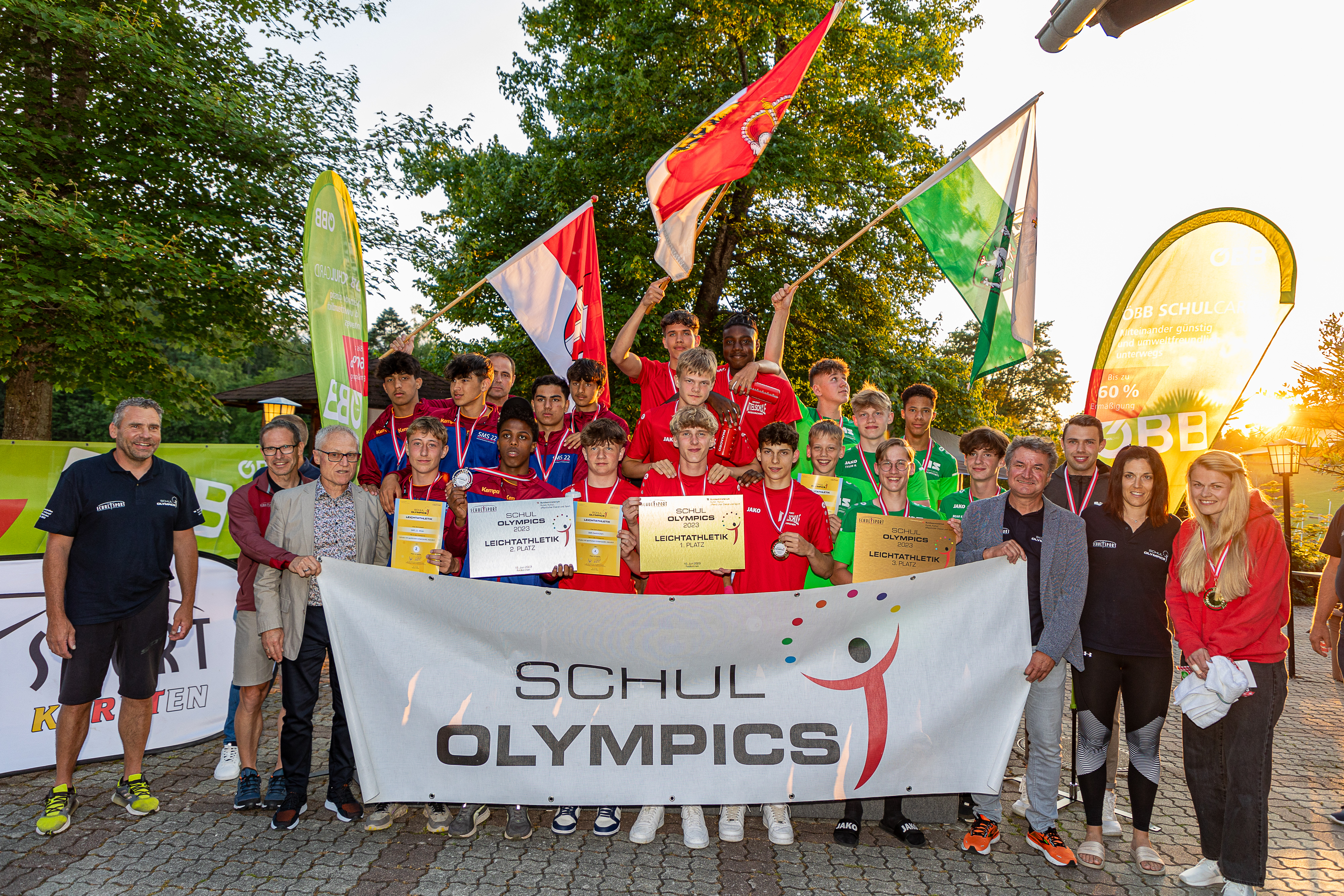 Die Sport-Mittelschule Deutschfeistritz am Siegerpodest bei der LEICHTATHLETHIK SCHUL-BUNDESMEISTERSCHAFT in Kärnten.