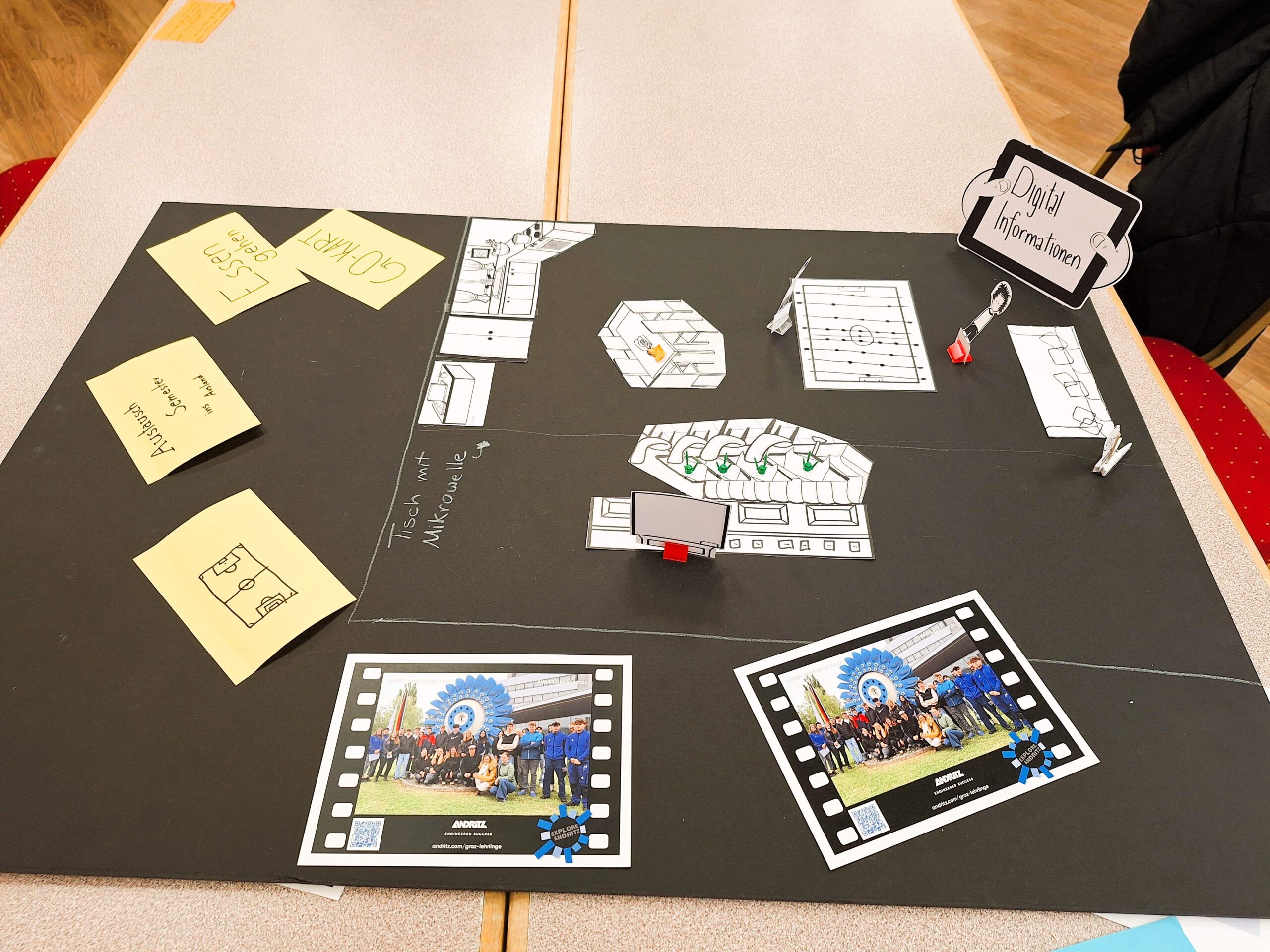 Die zweite Gruppe genoss eine interessante Firmenführung bei Andritz AG und sie wurden zur Ideensammlung angehalten, wie man den Pausenraum für Lehrlinge zeitgemäß und attraktiv gestalten könnte.