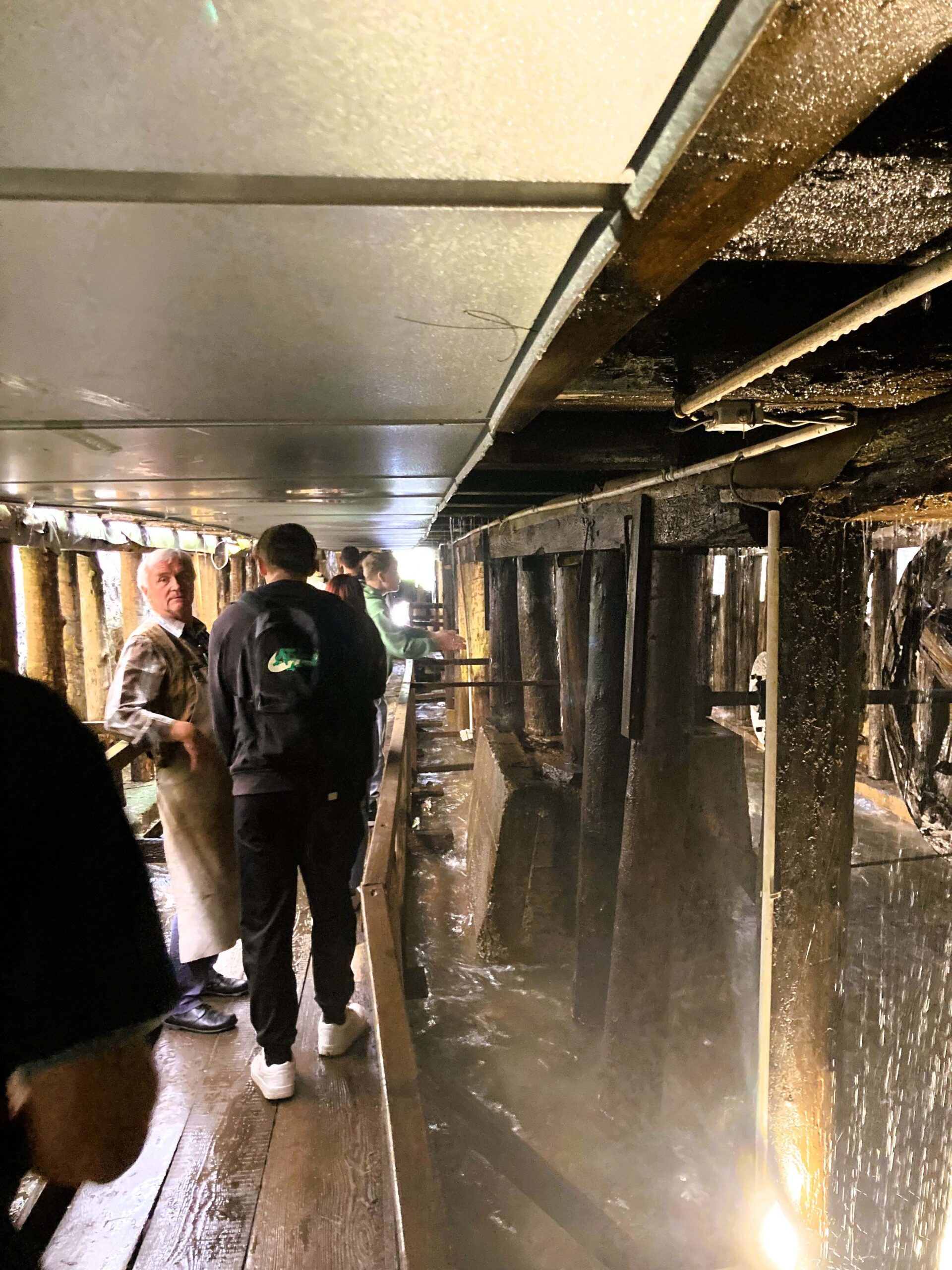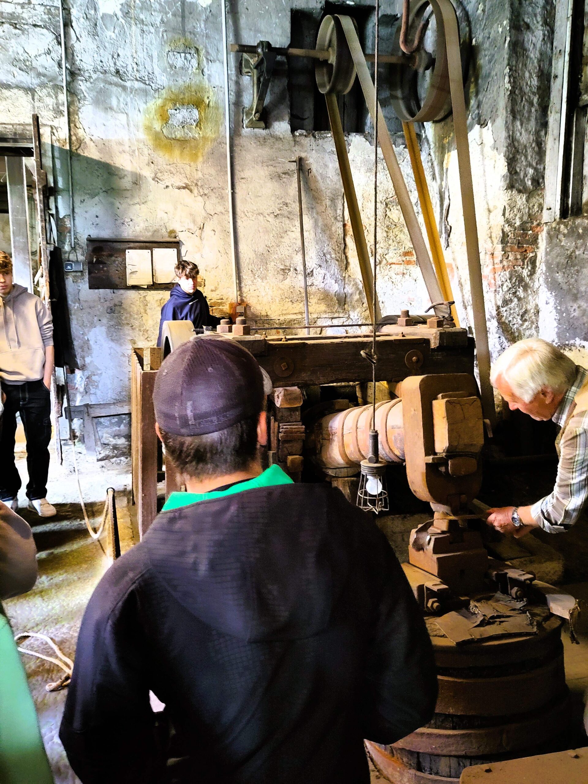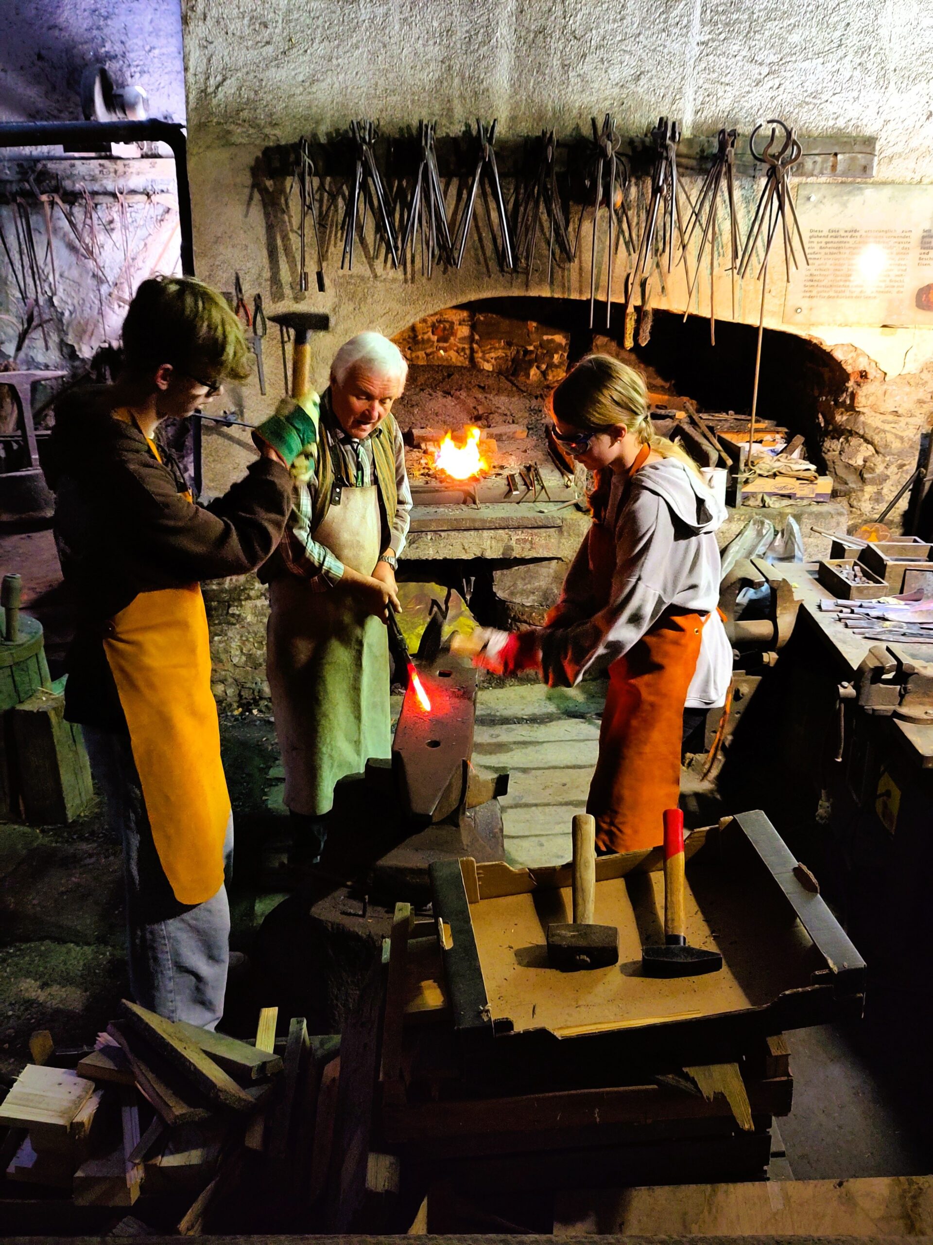 Im Zuge eines Workshops wurden mit den großen Wasserrädern die schweren Schmiedeeisen und Maschinen betrieben und bei dumpfen Hammerschlägen das glühende Eisen geformt, bei dem die Jugendlichen mitarbeiten durften.