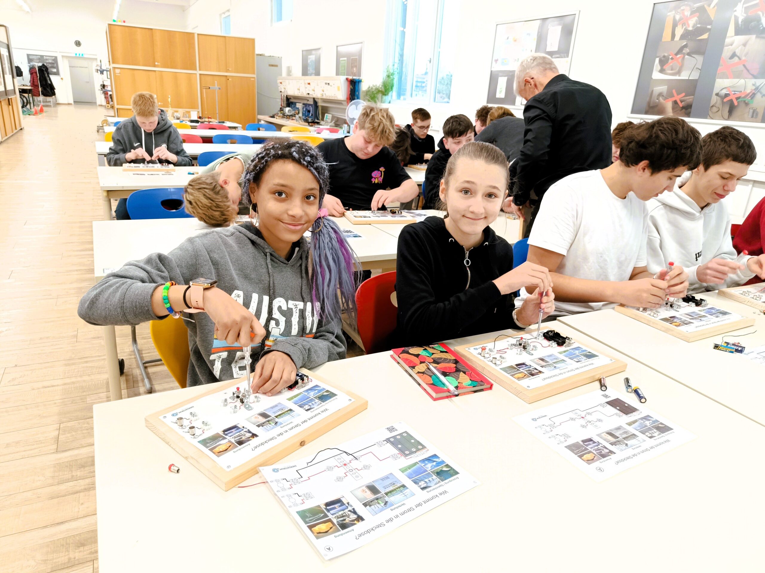 Die Energie Steiermark lud die Schüler:innen der Elektrogruppe zu einen Firmenbesuch ein. Wir bekamen einen Eindruck von der Vielfalt der Aufgaben und der Bereiche, in denen die Energie Steiermark tätig ist. In erster Linie wird Strom erzeugt und dabei wird der Fokus vermehrt auf erneuerbare Energien gelegt. Wasserkraft-, Windkraft-, Solarenergie- und Biomassewerke waren auch das Thema beim anschließenden Workshop im Energieforum, das DI Dr. Rudolf Schwarz leidenschaftlich betreibt. Die Schüler:innen durften in der Klima- und Energiewerkstatt selbst kleine Modelle verkabeln und konnten dabei erfahren, wie ein Generator beim Wasserkraftwerk oder eine Solar- oder Windkraftanlage funktioniert. Bei der Energie Steiermark werden derzeit viele Lehrberufe ausgebildet und die Suche nach Jugendlichen, die eine Lehre beginnen wollen, hat bereits gestartet.