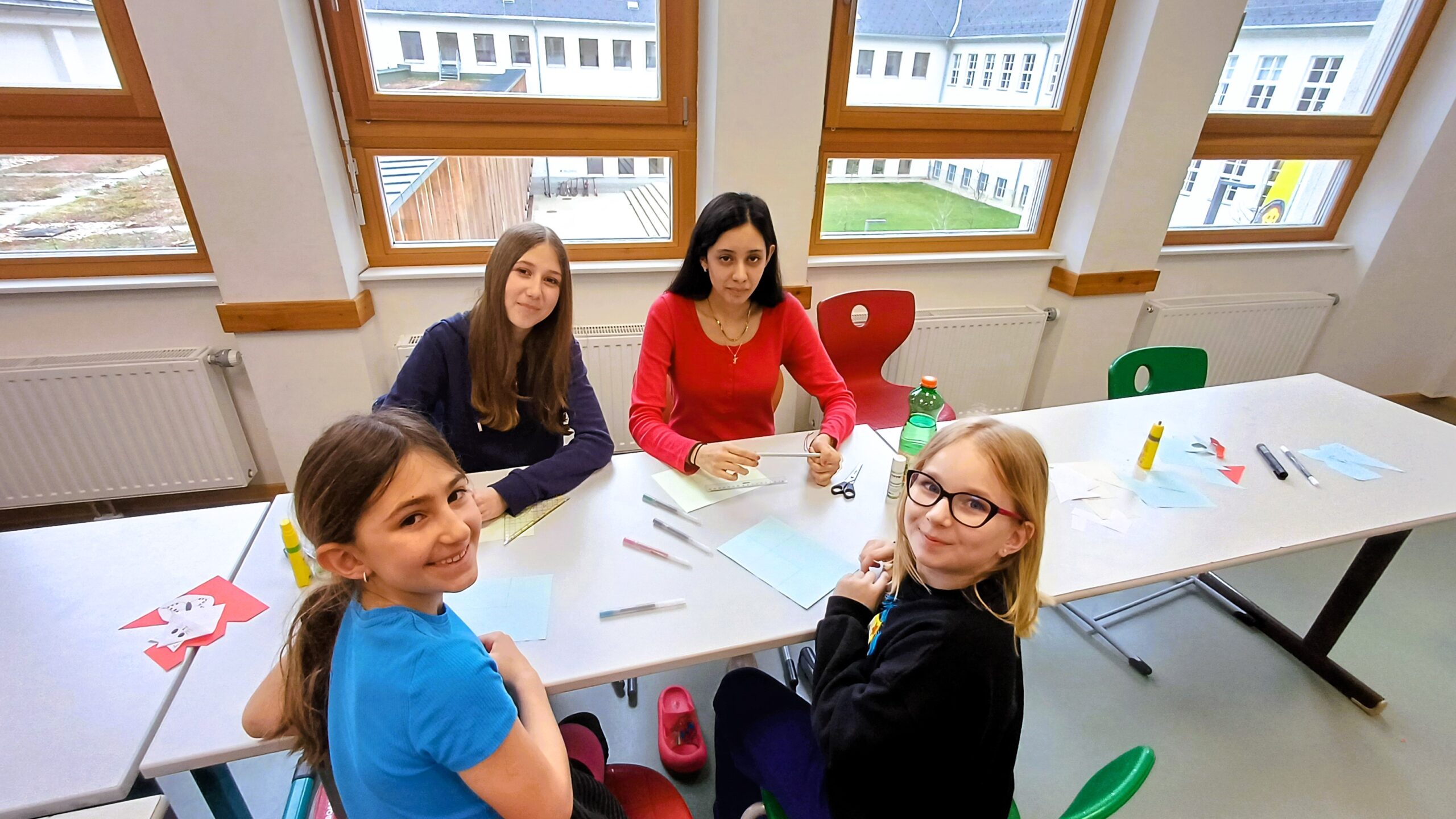 Im Anschluss an die Vorleseaktionen wurde es handwerklich: In einer gemeinsamen Aktion zwischen den beiden Schulen wurden Lesezeichen für die Volksschulkinder gefertigt. Die Kreativität der Schülerinnen und Schüler konnte hier voll zum Einsatz kommen. Zudem stand als weiteres Highlight des Tages das Neugestalten eines alten Bücherregals auf dem Programm. Dieses wurde mit märchenhaften Motiven und Bildern aus Asterix-Comics neu tapeziert und erhielt so ein frisches, modernes Design.