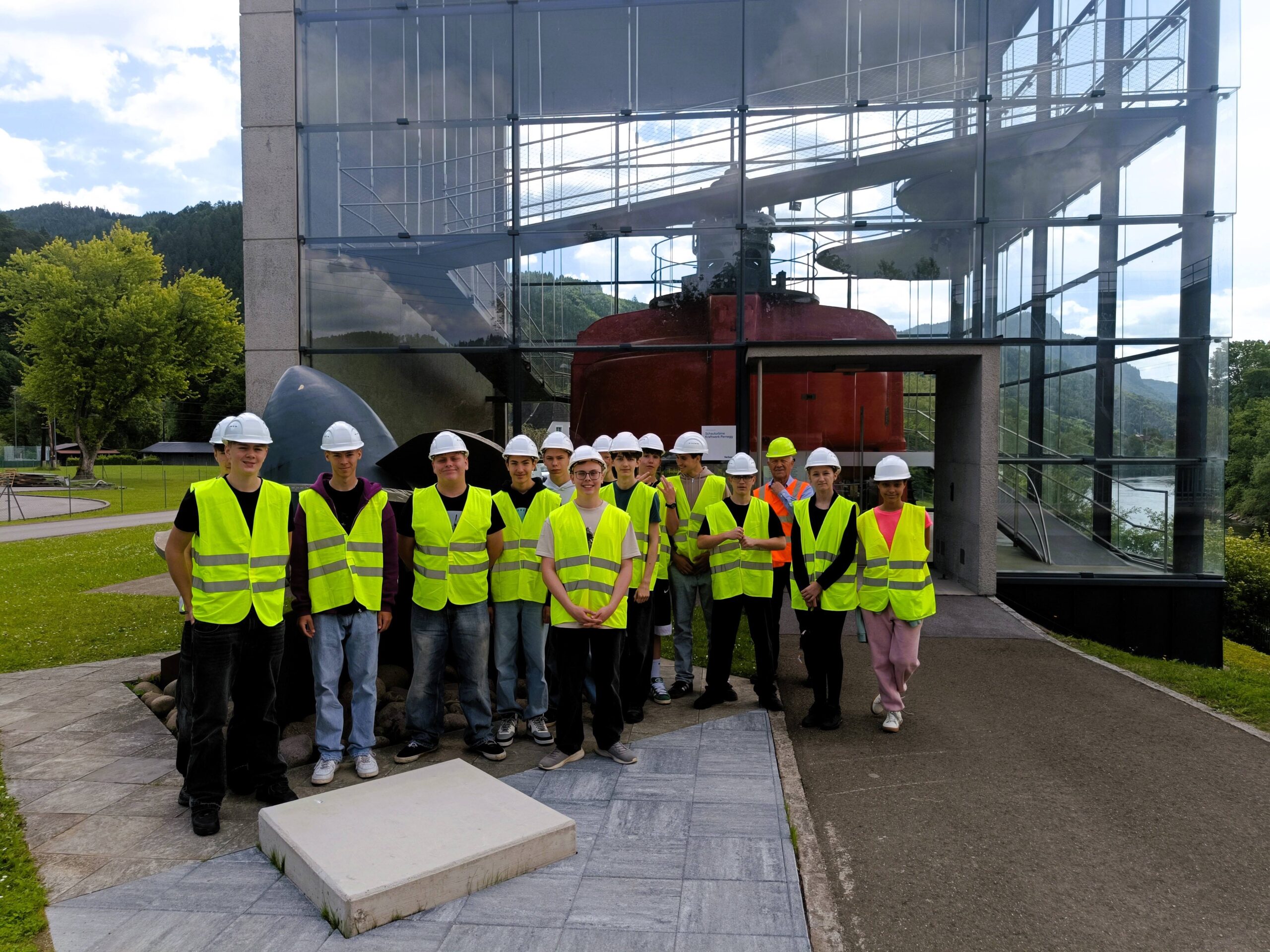 Die Stromversorgung nimmt ihren Ausgang bei Kraftwerken. Ein Großteil der Österreichischen Kraftwerke sind Wasserkraftwerke. Die Elektrogruppe hatte die Möglichkeit das Laufkraftwerk in Pernegg / Mur, das von der Firma Verbund betrieben wird, zu besichtigen. Seit mehr als 100 Jahren wird die Kraft der Mur zur Stromerzeugung genutzt. Wir erfuhren, dass das Wasser eine Turbine antreibt, die über eine Welle mit dem Generator verbunden ist. So wird Bewegungsenergie in elektrische Energie umgewandelt. Der erzeugte Strom wird über Hoch- und Höchstspannungsleitungen über weite Strecken transportiert. In einem Ausstellungsgebäude ist eine der originalen Maschinenbausätze als Schauturbine zu besichtigen. Derzeit werden in der Zentrale dort alle steirischen Kraftwerke vom Verbund überwacht, bald wird Pernegg die Hauptzentrale für ganz Österreich sein. Es werden noch Lehrlinge für den Doppelberuf Elektrotechnik und Metalltechnik gesucht, die Ausbildung erfolgt in der Lehrwerkstätte in Niederösterreich und in diversen Kraftwerken.