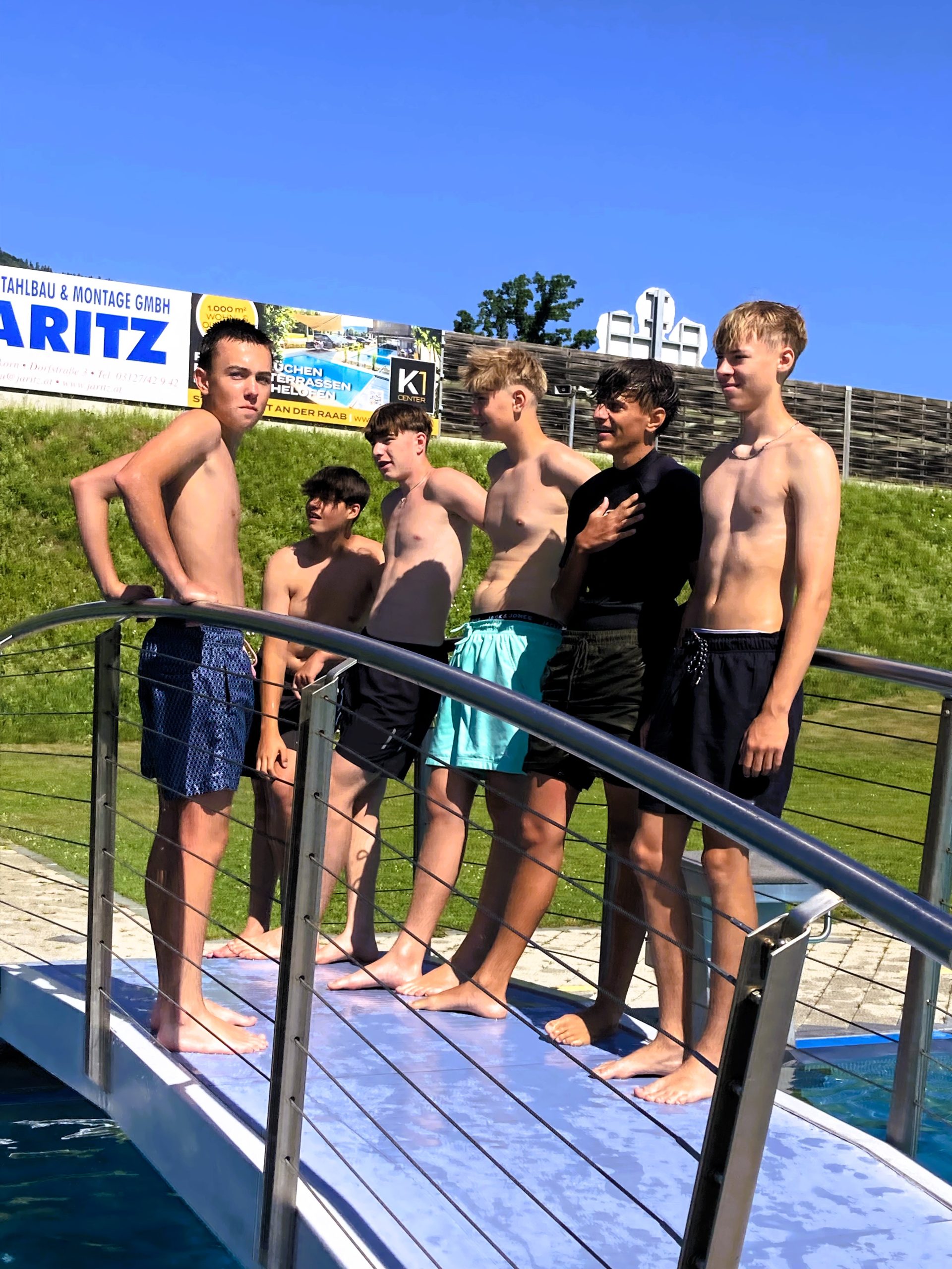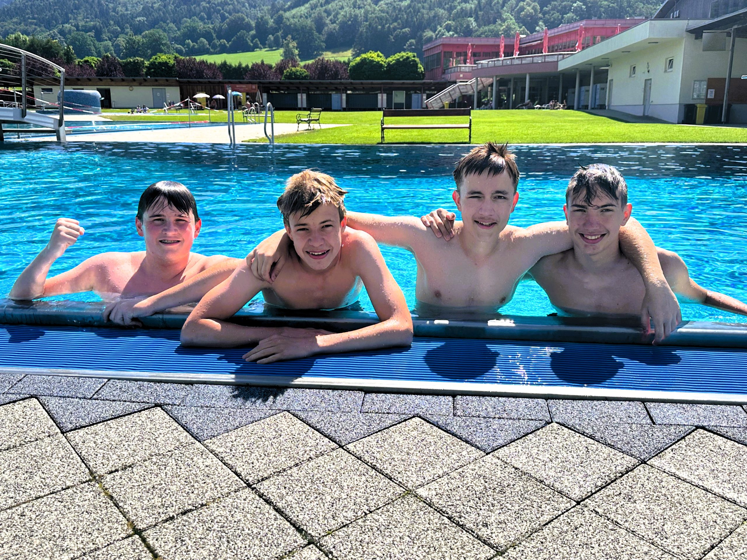 Nach ausgiebigem Badespaß im Freibad Frohnleiten bei hochsommerlichen Temperaturen fanden sich am Zeugnistag alle Schüler und Schülerinnen zu einem Gottesdienst am Deutschfeistritzer Kirchberg ein. Bei der anschließenden Zeugnisverteilung flossen unhaltsam viele Tränen. Viele enge Freundschaften entstanden und viele gemeinsame Projekte machten Spaß und Freude.