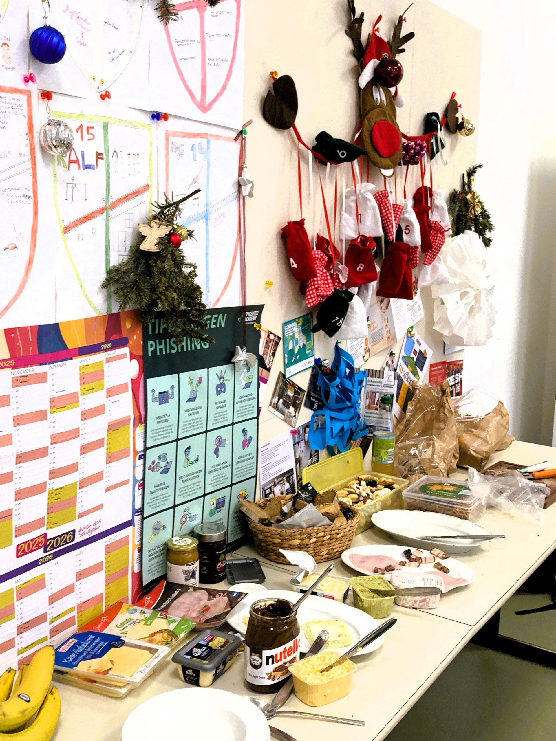 Weihnachtlich dekorierte Klassenzimmer und Schulgänge – Weihnachtsduft und altbekannte Christmas Carols.