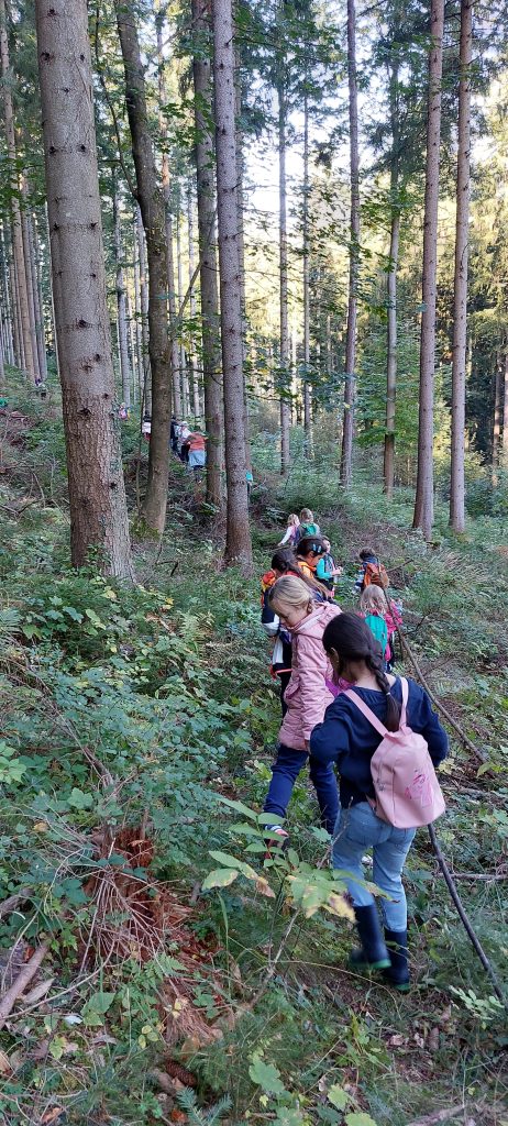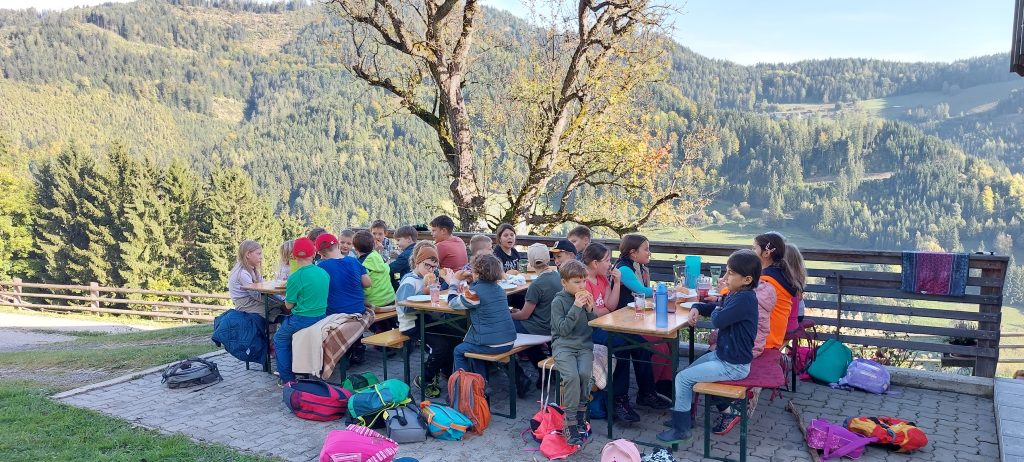 Am Donnerstag, 12.102023 machten wir gemeinsam einen Wandertag. Wir konnten bei herrlich warmem Herbstwetter direkt von der Schule aus starten – der Weg führte uns über den Wald in Richtung Arzwaldgraben. Das Ziel unserer Wanderung war der Bauernhof der Familie Kogler, dort erwartete uns eine ganz tolle Jause – vielen, vielen Dank für die tolle Bewirtung! Anschließend konnten wir uns am Hof umsehen, durften zu den Kühen in den Stall schauen und noch ein bisschen spielen. Später machten wir uns wieder auf den Weg zurück zur Schule.