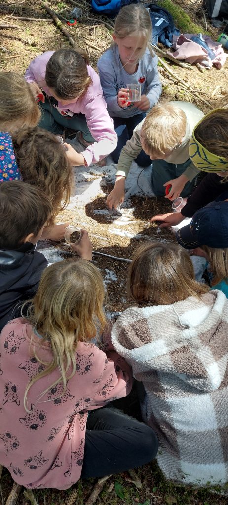 Im Rahmen unseres Jenaplanprojekts verbrachten die Kinder einen spannenden und lehrreichen Tag im Wald – begleitet von der erfahrenen Waldpädagogin Michaela Ziegler stand der „Waldtag“ ganz im Zeichen der heimischen Insektenwelt.