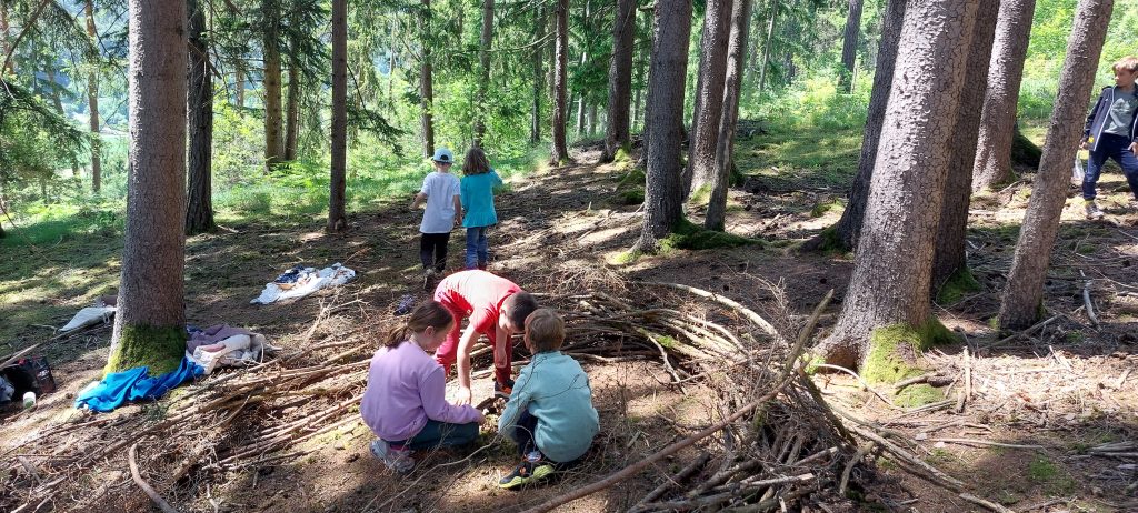 Zum Abschluss des Tages entstand mit vereinten Kräften ein riesiges Vogelnest aus Ästen, Zweigen und Laub – ein kreatives Gemeinschaftsprojekt, das den Ausflug auf besondere Weise abrundete.